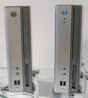 Компания отлично известна в России своими материнскими платами и графическими картами. Однако, в этот раз на стенде были представлены не совсем привычные для этого бренда продукты, которые в ближайшее время также появятся на полках магазинов под торговой маркой G-MAX. Например, вот такие миниатюрные barebone-системы TA2 на платформе VIA C3 EBGA 800 МГц + чипсет CLE266: