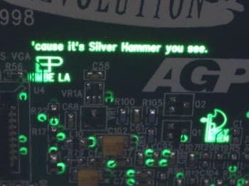 Поступившая в наш музей карта #9 Revolution IV, 16MB SDRAM интересна не только как изделие ушедшей в небытие фирмы, но так же как памятник работникам #9. Если посмотреть печатную плату карты на просвет, то на одном из внутренних слоев текстолита видны фразы из текстов песен группы The Beatles, коими учредители NumberNine были горячими поклонниками. Впрочем, почему были, "померла" только компания, а люди остались, с момента выпуска этой карты прошло всего лишь пять лет. А кажется, как со времен выпуска последней пластинки The Beatles...