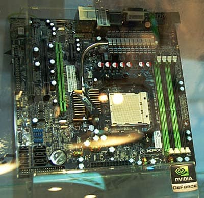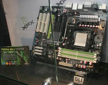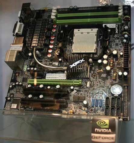 Две интересные системные платы для процессоров AMD находились на стенде компании XFX. Одна из них, изображенная на первом и втором снимках, построена на GeForce 8300 и является первым продуктом такого рода в ассортименте компании.