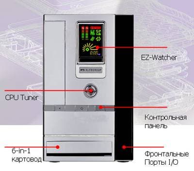 Миниатюрная система EZ-Buddie имеет габариты всего 162 х 263 х 310 мм. При всей своей малогабаритности, система неплохо оснащена средствами аппаратного мониторинга и оповещения, также имеется встроенный универсальный картовод: