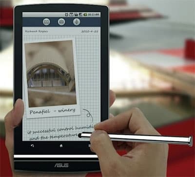 Четвертым планшетом, анонсированным компанией ASUS на кануне выставки CES, оказался аппарат под названием Eee Pad MeMO. Новинка полностью оправдывает свое название за счет включенного в комплект поставки пера, чувствительного к нажиму, и двух специальных приложений — Media Note и Painter, позволяющих с одинаковым удобством рисовать на сенсорном экране и делать рукописные записи.