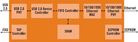 Компания SMSC, два месяца назад предложившая первую в отрасли технологию подключения мониторов по USB 3.0, продолжает разрабатывать продукты, соответствующие предыдущей версии спецификации USB. Представленная вчера микросхема LAN7500 представляет собой «переходник», объединяющий Hi-Speed USB 2.0 и Gigabit Ethernet. В LAN7500 интегрирован интерфейс физического уровня 10/100/1000 Мбит/с и улучшенные средства управления питанием, такие, как поддержка режима Wake on LAN. По данным компании, LAN7500 является первым решением в своем классе, получившим сертификат USB Implementers Forum (USB-IF).