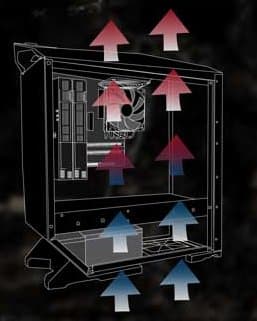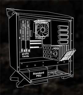 Основным отличием корпуса является нестандартное расположение системной платы — она повернута на 90 градусов по сравнению с традиционным положением. Это означает, что графические адаптеры и другие платы расширения располагаются вертикально, а значит, горячий воздух от них свободно подымается вверх. Сообщается, что данная технология запатентована SilverStone.