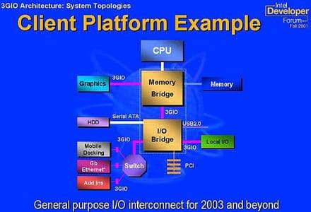Под занавес IDF, в рамках ознакомления с концепцией 3GIO, была показана блок-схема ПК-2003, как она видится Intel.