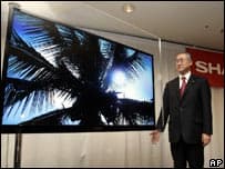 Типичным экраном для нового формата видео, Super Hi-Vision, должен стать экран с размером диагонали 60", на который не следует смотреть с близкого расстояния. 60-дюймовый экран, конечно, большой, но только лишь по сегодняшним меркам, не следует забывать, что с 1950x диагональ телевизоров постоянно росла, а изначально была равна всего-то ~12". На CES-2008 между тем, были показаны куда большие экраны — вплоть до 150".
