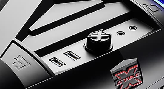 В передней части верхней стенки Strike-X Cube размещен регулятор скорости вращения вентиляторов, три порта USB 3.0 и стандартные гнезда для подключения наушников и микрофона.