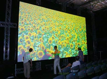 Прототип экрана, способного показать картинку, состоящую из 32 миллионов точек, компания NHK показала на выставке CommunicAsia. Изображение формировали два LCoS-проектора, совместный световой поток которых составил 8000 люменов. Размеры экрана — 6,6 x 3,7 м (300 дюймов по диагонали).