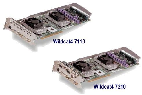 Карты Wildcat4 7210 и Wildcat4 7110, которые появятся в ноябре, главным образом, в составе Windows 2000/XP систем от ведущих OEM производителей, поддерживают интерфейс AGP 8х / AGP Pro 50, поддерживают вывод на два монитора (2 х DVI-I, 2 х 10-бит 320 МГц RAMDAC), комплектуются драйверами для работы в приложениях AutoCAD и 3ds max, а также в системах под управлением Linux. Карта Wildcat4 7210 оборудована 384 Мб памяти (128 Мб фреймовой памяти, 256 Мб текстурной), карта Wildcat4 7110 - 256 Мб памяти (128 Мб фреймовой памяти, 128 Мб текстурной). Ориентировочная стоимость карт превысит отметку в $1200.