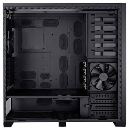 Можно отметить некоторые детали, которые делают корпус привлекательным для требовательных сборщиков систем. Так, новинка имеет съемную заднюю панель и отверстия для кабелей, три 140-миллиметровых вентилятора плюс места для еще четырех 120-миллиметровых. В поддоне для системной платы есть окно, упрощающее монтаж и демонтаж процессорной системы охлаждения.