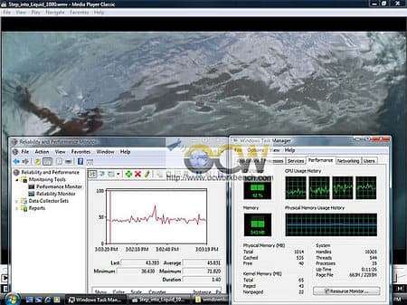 Задачу, которая была не по силам Atom N270, с легкостью решил недавно вышедший двухъядерный Atom 330. В проведенных источником тестах с платой ECS P45GC он с лёгкостью справился с клипом сжатым с применением кодека WMVHD. Загрузка ядер составила 45-50%. К сожалению, тестов для видео, сжатого H.264 и VC-1 проведено не было, но значительный запас в измеренном случае говорит о том, что с ними проблем быть тоже не должно.
