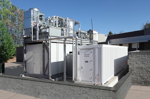«ЦОД в контейнере» Cisco снижает потребление энергии. Его индекс PUE (power usage effectiveness - эффективность использования электроэнергии) составляет менее 1,25, тогда как у других ЦОД он колеблется от 1,6 до 3,0.