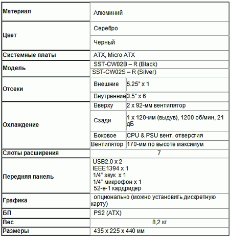 Корпуса серии Crown SST-CW02 задумывались, как стильные и элегантные конструкции премиум-класса для Hi-End систем HTPC, которые полностью выполнены из алюминия. Напередней панели расположен ЖК-экран с мультиязычным интерфейсом, а также пара ручек управления: для регулировки громкости и навигации. ПДУ к Crown SST-CW02 также является дополнительным удобным устройством управления.