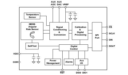 В линейке интегральных сенсоров iSensor компании Analog Devices появился программируемый гироскоп ADIS16250. Микросхема, характеризующаяся малым энергопотреблением, включает в себя все узлы, обеспечивающие калибровку, настройку и управление. Она позволяет определить скорость, с которой вращается система.