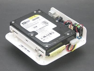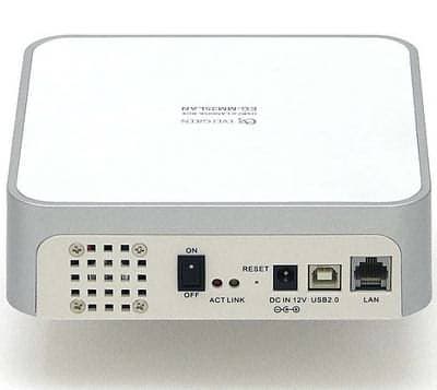 Внешний накопитель EG-MM35LAN отличается компактными размерами - всего165x165x47 мм и имеет корпус, стилизованный под компьютер Mac Mini. Внутри может находится жесткий диск типоразмера 3,5" как с IDE, так и с SATA интерфейсом. Подключение к компьютеру осуществляется посредством сетевого илиUSB 2.0 разъема. Производитель предлагает также модель без Ethernet интерфейса. Питается внешний накопитель от 12-В источника питания (БП). В качестве системы охлаждения НЖМДиспользуется небольшой вентилятор.