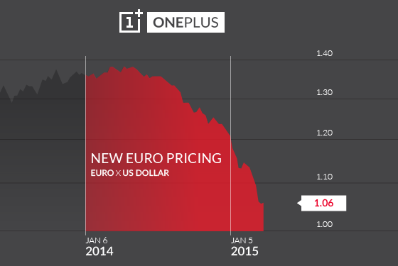 В связи с нестабильностью курса евро и его продолжающегося падения по отношению к доллару компания OnePlus объявила о повышении цен на свой смартфон One. Это объясняется минимальной маржой, которую компания заложила в розничную цену изделия, а теперь начинает терпеть убытки.