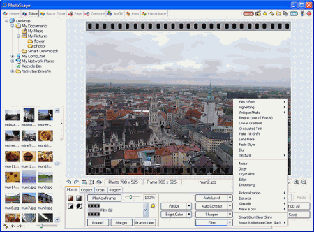 Photoscape - бесплатный графический пакет, удобный и простой в использовании, сочетающий в себе сразу несколько утилит. В Photoscape имеется просмотрщик, также способный работать в режиме слайдшоу, графический редактор для быстрого изменения размеров и гаммы, наложения дополнительных спец.эффектов и фильтров, добавления текстов и других элементов. Поддерживается пакетная обработка файлов, объединение картинок, создание анимированных GIF-файлов, захват изображений, конвертация формата RAW в JPG и многое-многое другое.
