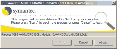 Symantec Adware.NDotNet Removal Tool — бесплатная утилитка от компании Symantec, которая сканирует компьютер на предмет обнаружения рекламной программы NDotNET и других ее разновидностей, а затем "безболезненно" удаляет их с ПК.
