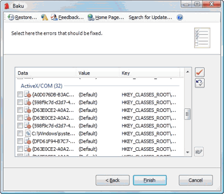 Основное предназначение Baku - очистка жестких дисков ПК от ненужных файлов и исправление ошибок в системном реестре операционных систем Windows. Программа удаляет пустые директории, очищает папки переходов, списки недавних документов, папки со временными файлами, ищет и ликвидирует лог-файлы, ссылки на несуществующие файлы и папки. Сканирует реестр на предмет очистки от ненужных ссылок и связей, создает резервные копии для отмены всех произведенных изменений.
