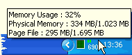 MemInfo - бесплатная утилита, отображающая в системном трее текущую загруженность подсистемы памяти компьютера. Программа крайне простая в использовании, обновляет информацию в реальном времени, при наведении мышки на иконку предоставляет дополнительные сведения.