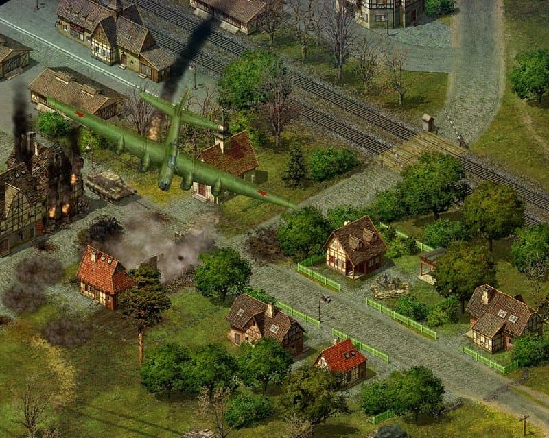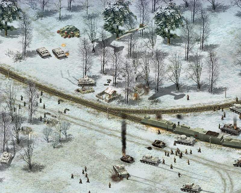 Россия, зима 1942 года. Комбинированная атака советских танков и штурмовиков при поддержке бронепоезда на немецкие резервы.