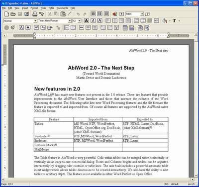 Скачивать AbiWord v.2.0.3 здесь (4,8 Мб, Freeware, Windows All).