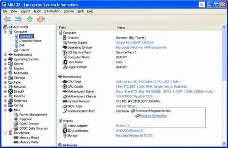 Вышла новая версия AIDA32, профессиональной системы для сбора информации о ПК, диагностики его компонент и тестирования быстродействия программ, работающих на платформах под управлением операционных систем Win32. Пользователю предоставляется исчерпывающая информация обо всех компонентах, которую затем можно распечатать или сохранить в различных форматах HTML, CSV или XML. Кроме того, поддерживается управление из командной строки, работа и сбор информации по сети.