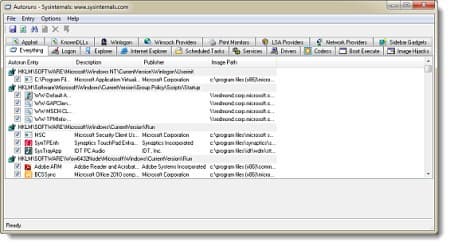 Вышла новая версия утилиты Autoruns, которая отображает все загружаемые модули и программы, а также указывает способы их запуска и расположение исполняемых файлов. Программа проверяет Автозагрузку, Run, RunOnce и другие секции и ключи реестра. При необходимости можно настроить Autoruns для мониторинга других локаций, в том числе модулей Explorer, панелей управления, BHO (Browser Helper Objects), извещений Winlogon, автоматически запускаемых сервисов и т.д.