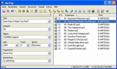 Выпущена новая бета-версия утилиты MP3tag v.2.3x, при помощи которой вы сможете достаточно легко и быстро отредактировать ID3-тэги и комментарии в MP3- и Ogg файлах. Присутствует возможность импорта/экспорта информации, создании плейлистов, поддержка работы с онлайновой online базой freedb и т.д. Имеется русский интерфейс.