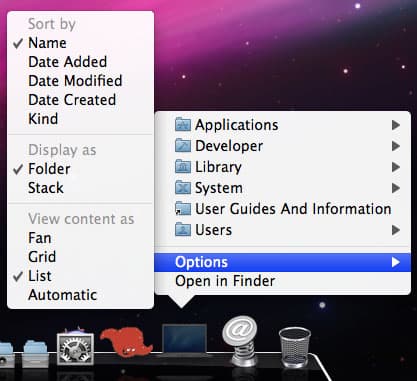 Apple не раз подвергалась критике со стороны пользователей за отсутствие в Leopard возможности просмотра содержимого стеков в виде списков, так как обычные для стеков способы отображения зачастую не позволяют производить удобную навигацию по файлам и папкам.