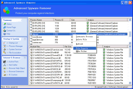 Advanced Spyware Remover простая в использовании утилита, предназначенная для защиты компьютера от шпионского ПО, рекламных программ, hijack´ов, вредоносного ПО, дозванивальщиков, кейлоггеров и т.д.