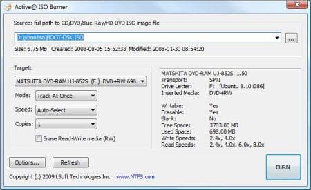 Скачивать Active@ ISO Burner v.3.0 там (2,8 МБ, Freeware, Windows All).
