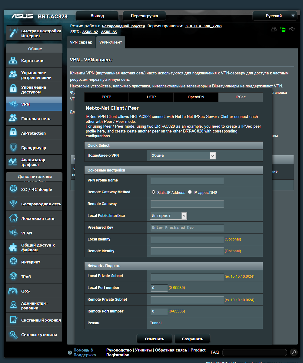 Роутер имеет встроенные сервисы для работы с VPN — сервер для протоколов PPTP, OpenVPN и IPSec, а также клиент для PPTP, L2TP, OpenVPN и IPSec.