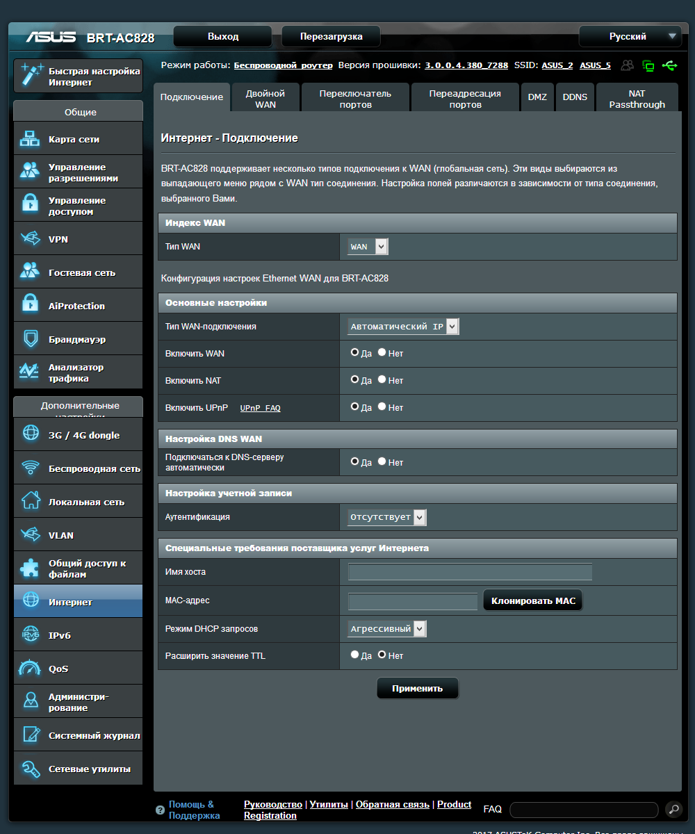 Основное тестирование роутера проводилось с прошивкой версии 3.0.0.4.380_6947, для некоторых тестов использовалась и более новая версия 3.0.0.4.380_7288.