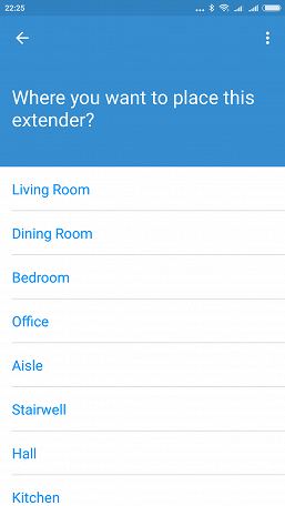 На первой странице предлагается выбрать название помещения, где будет установлено устройство.