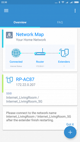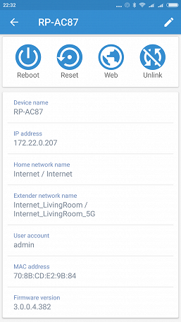 Из дополнительных операций в мобильном приложении есть только перезагрузка и сброс. При необходимости можно также обратиться к полному веб-интерфейсу устройства, в частности, если вам потребуется применять его в отличных от повторителя режимах.