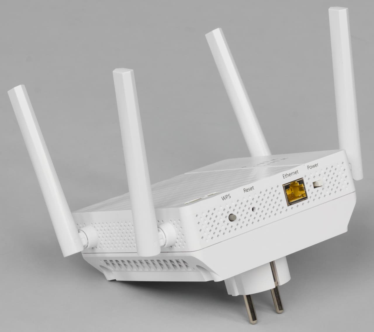 Устройство достаточно крупное, но выполнено в формате для установки сразу в розетку электропитания. Поддерживаются беспроводные сети в диапазонах 2,4 и 5 ГГц, включая 802.11ac. Максимальные скорости подключения составляют 800 и 1733 Мбит/с, что соответствует классу AC2600. Кроме того, предусмотрен один порт гигабитной проводной сети. Кроме сценария повторителя, модель можно использовать в режимах точки доступа и медиамоста.