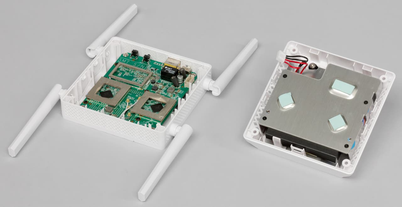 Платформе повторителя могут позавидовать многие роутеры: двухъядерный процессор Mediatek MT7621AT, 64 МБ оперативной памяти, флэш-память 16 МБ, два радиоблока Mediatek MT7615N. Но в отличие от роутеров, здесь мы видим только один гигабитный сетевой порт. Жаль, что, несмотря на крупный корпус и наличие сетевого коммутатора в процессоре, производитель решил реализовать именно такую конфигурацию.