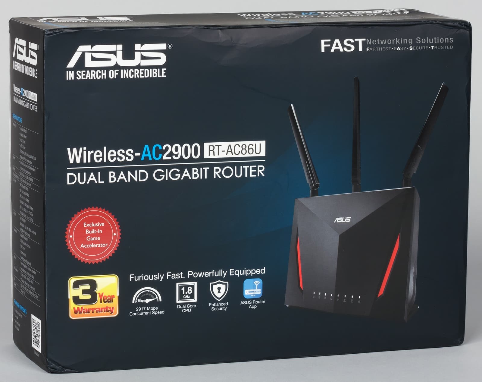 В этой статье мы познакомимся с Asus RT-AC86U — беспроводным роутером класса AC2900 с гигабитными сетевыми портами, портом USB 3.0, двухъядерным процессором и широким набором расширенных функций в прошивке.