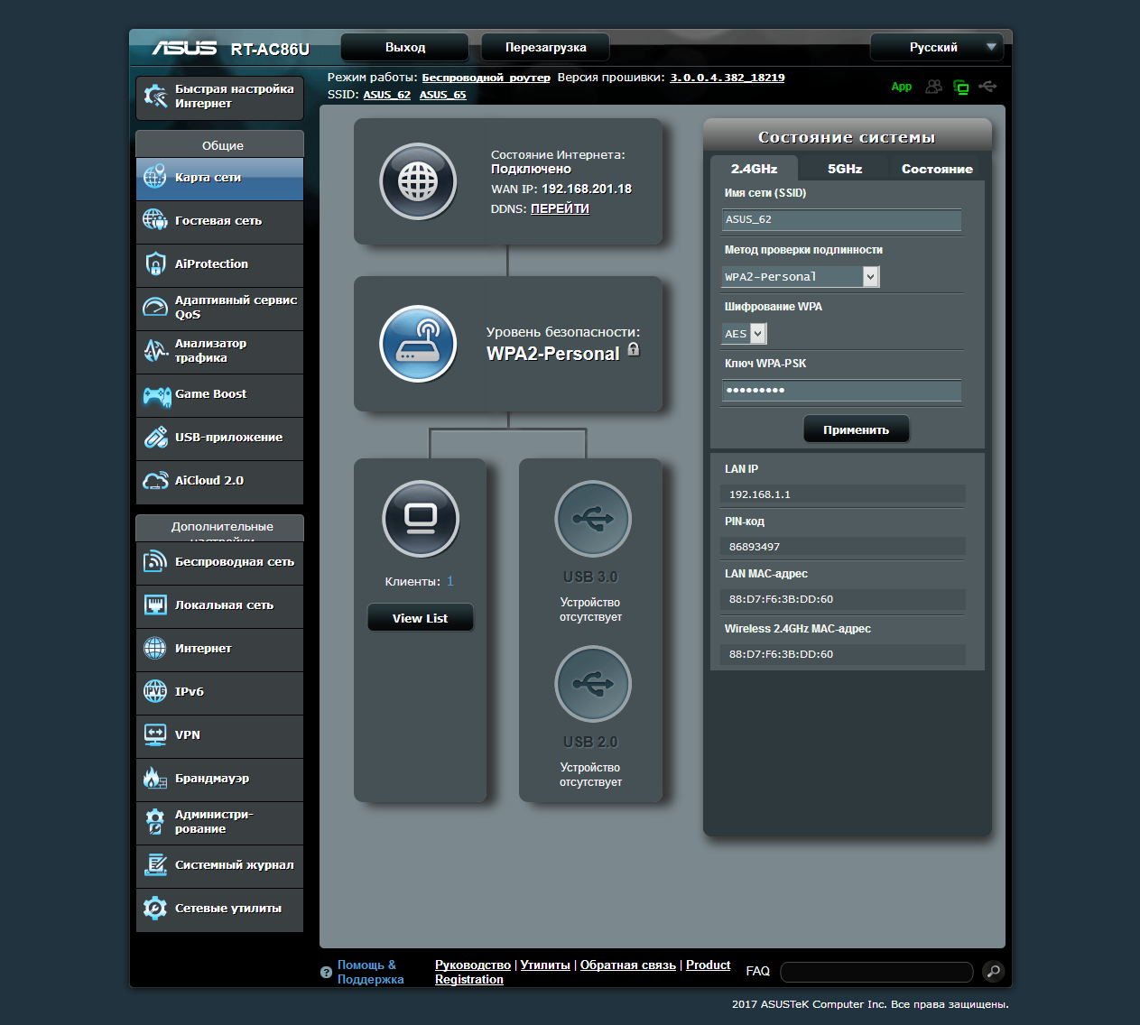 Тестирование роутера проводилось с прошивкой версии 3.0.0.4.382.18219.