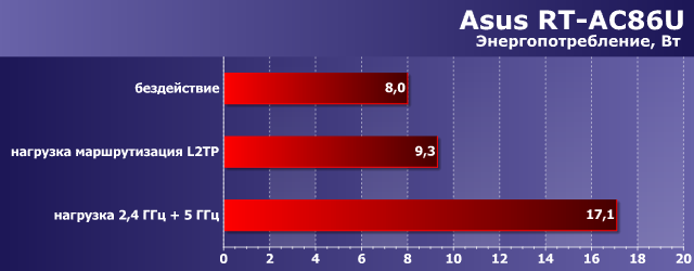 В аналогичных режимах мы оценили и уровень энергопотребления роутера «из розетки».
