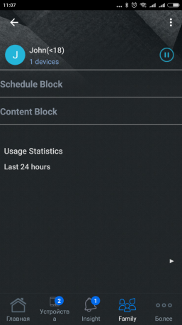 Следующий интересный пункт — «Family». Учитывая число гаджетов, возможность группировки их по пользователю с настройкой единой политики доступа к интернету и фильтрации контента выглядит полезной, особенно для родителей.