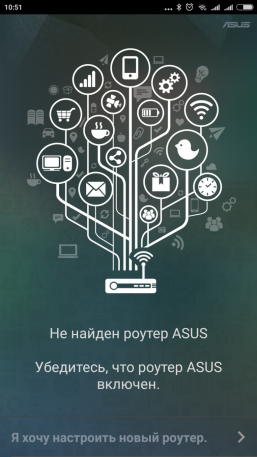 Итак, у нас есть роутер «из коробки» и смартфон, на котором установленная программа Asus Router, доступная для Android и iOS. Кстати, в магазинах есть и еще пара программ, которые могут оказаться полезными пользователям данного устройства. После запуска программы выбираем пункт «Я хочу настроить новый роутер». При наличии соответствующих разрешений, утилита сама находит беспроводные сети нового роутера и предлагает к ним подключиться.