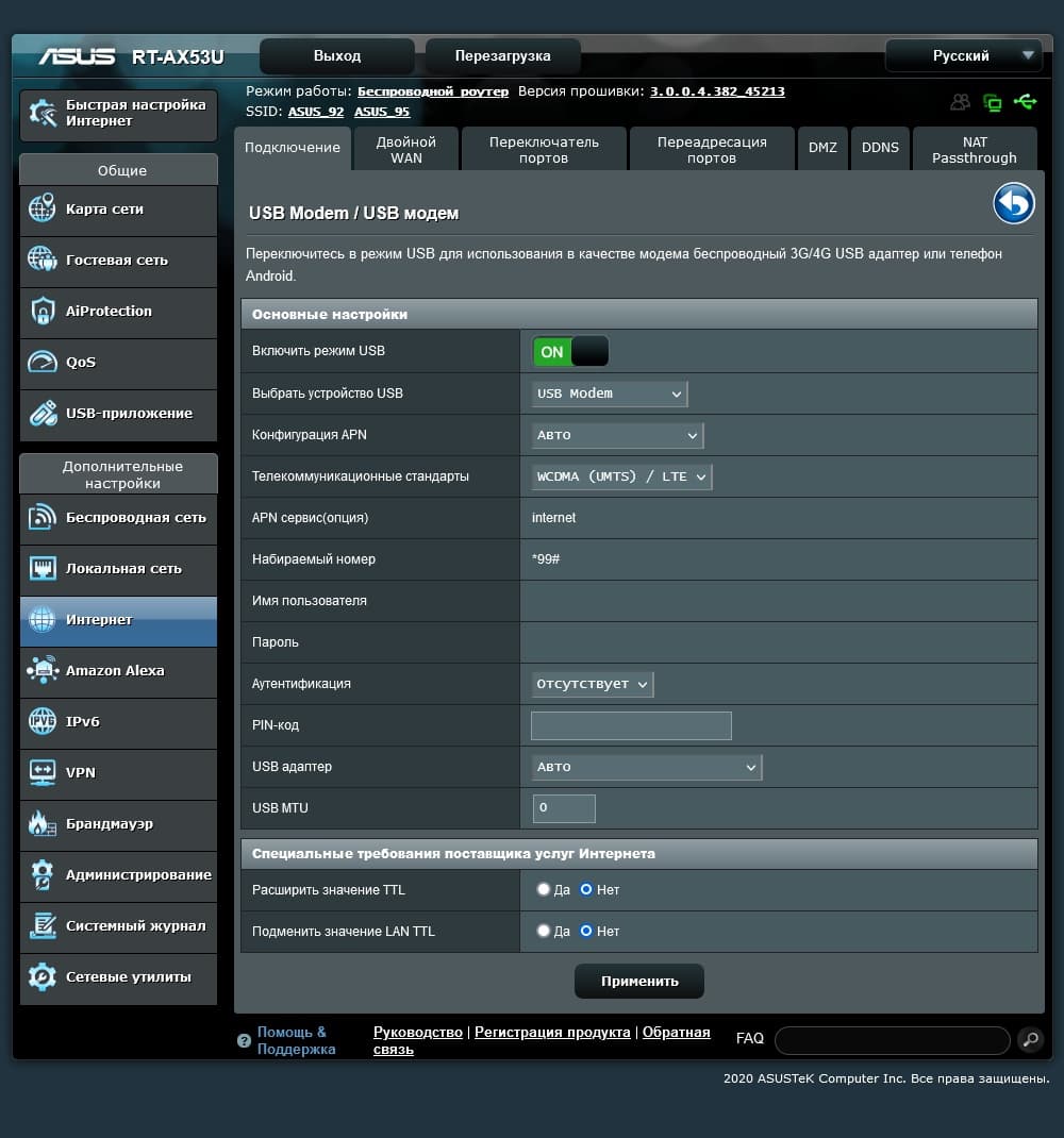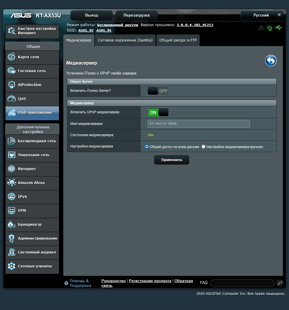 Тестирование проводилось с релизной прошивкой версии 3.0.0.4.382_45213.