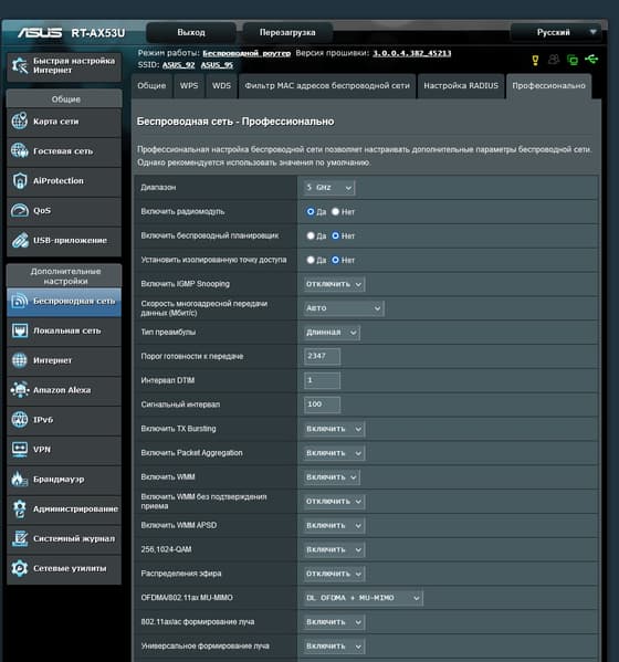 Отметим, что управления мощностью передатчика и поддержки AiMesh здесь нет.