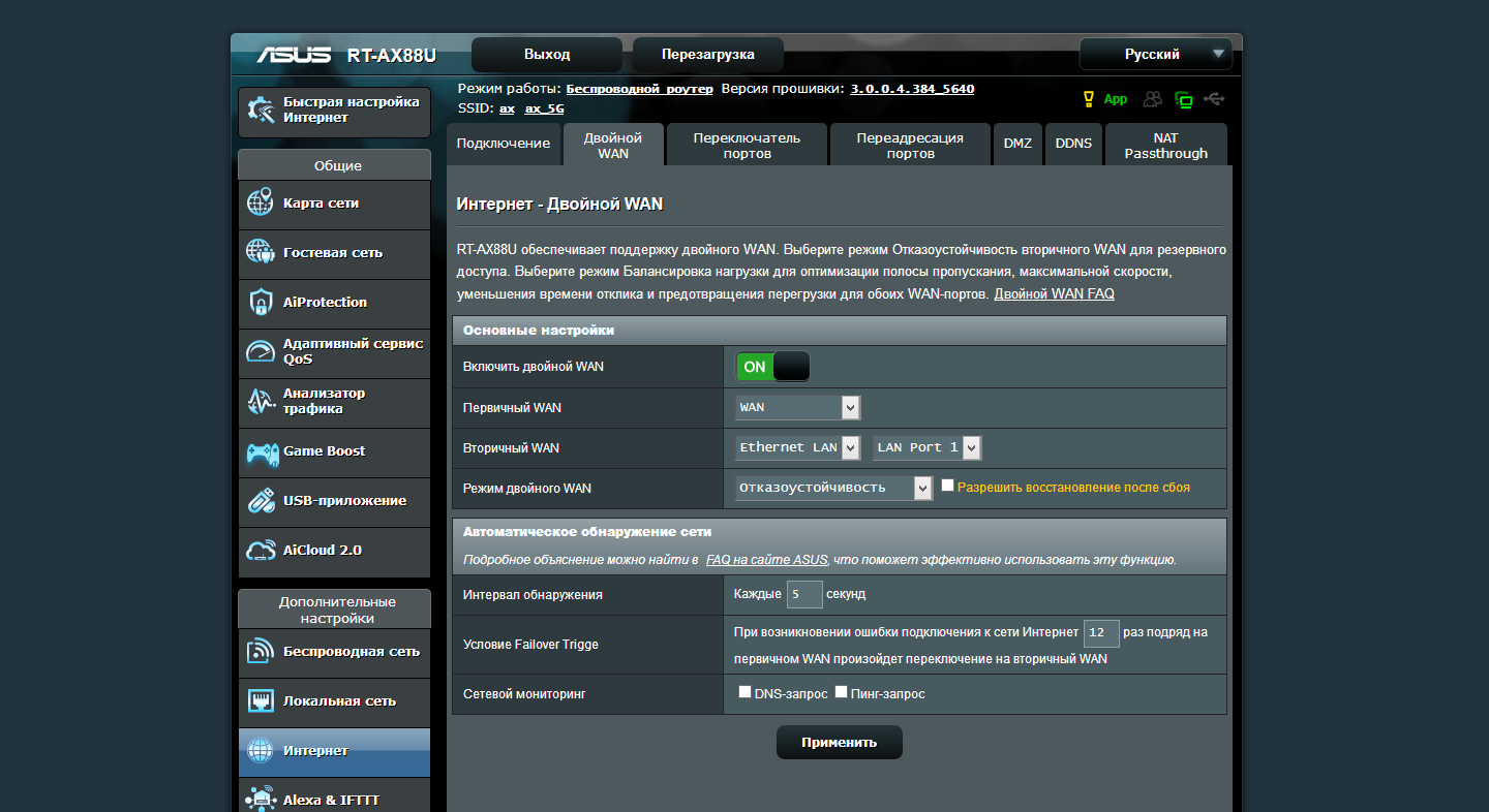 Тестирование роутера проводилось с прошивкой версии 3.0.0.4.384_5640, последней доступной на момент работы над статьей.