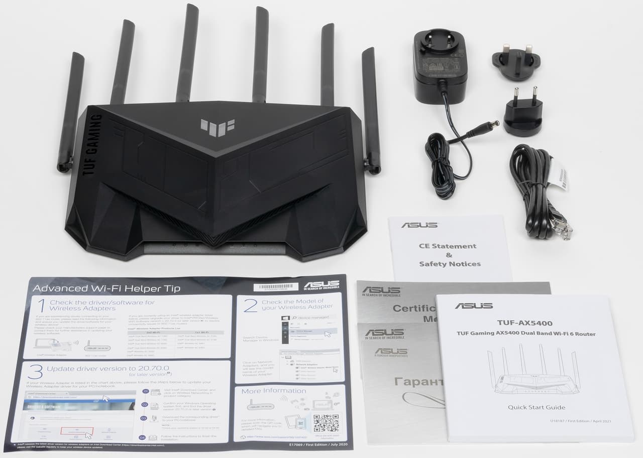 TUF Gaming AX5400 (TUF-AX5400) позиционируется производителем как быстрый игровой маршрутизатор повышенной надежности. Впрочем, мы понимаем, что данное описание хорошо работает в плане маркетинга, но может быть не очень понятным с технической точки зрения. Все-таки в применении к данному типу сетевого оборудования нет никаких объективных проблем для запуска игр с любыми роутерами («пользовательские впечатления» в данном сценарии — это отдельный вопрос), а надежность современной техники известных брендов в подавляющем большинстве случаев не вызывает нареканий (та быстрее устареет морально или технически, чем выйдет из строя).