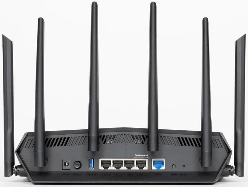 Разработчики отмечают следующие ключевые особенности продукта: класс AX5400, поддержка режима объединения портов для LAN и WAN, простая настройка проброса портов, оптимизация для игровых приложений на ПК и мобильных устройствах, поддержка Asus AiMesh, многоцветная подсветка Aura. К сожалению, часть из описанного сложно оценить с точки зрения реальной эффективности. Так что в разделе тестирования этого материала мы сосредоточимся на том, что́ можно измерить, включая основную задачу маршрутизации трафика, работу с беспроводными клиентами в режиме Wi-Fi 6 и скорость доступа к файлам на USB-накопителе.