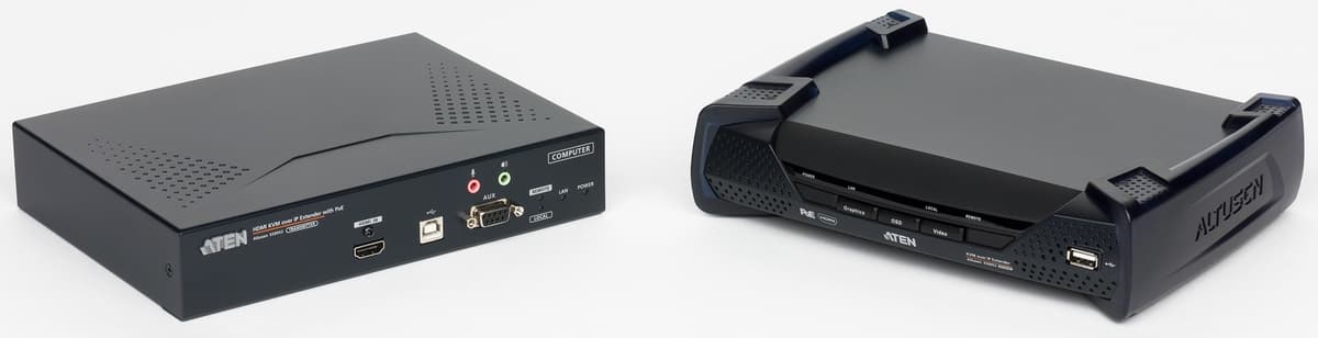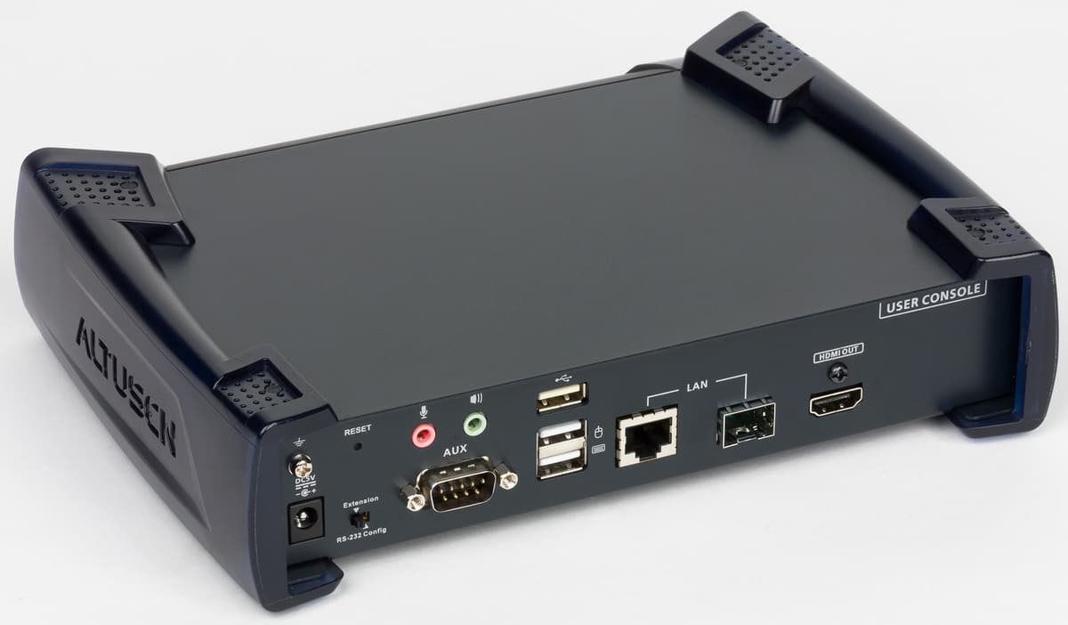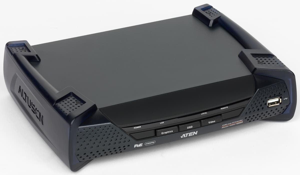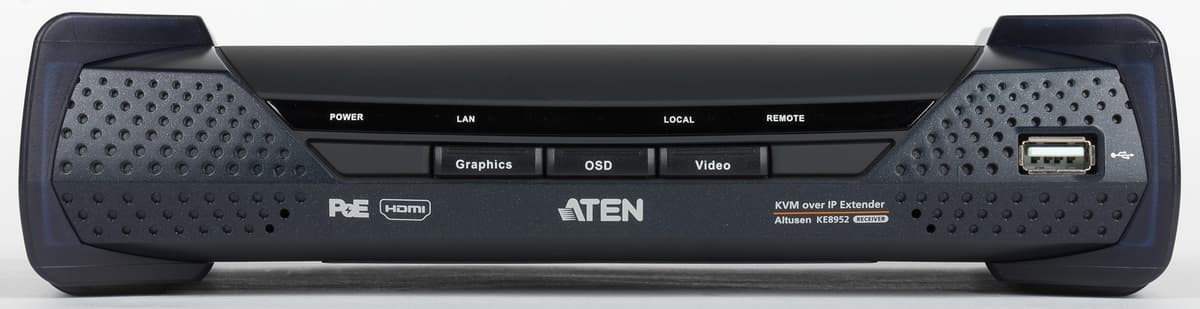 При этом особое место занимают модели, способные работать по стандартной компьютерной сети, что существенно добавляет гибкости по сравнению с требующими выделенного кабеля продуктами и позволяет реализовать в том числе и подключение через интернет. Про рассмотренный в статье Aten KE8952 можно сказать, что он поддерживает оба этих варианта. Причем наличие встроенного порта для оптических модулей позволяет без особых проблем существенно увеличить длину линии подключения.