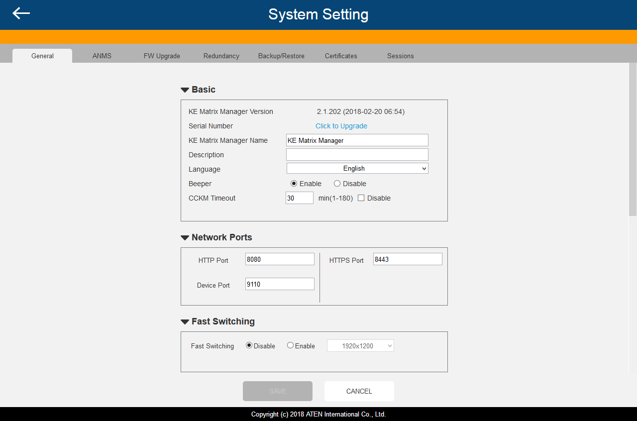 Цена полной версии — около $2500. Чтобы получить бесплатную версию, необходимо зарегистрировать устройство серии KE на официальном сайте www.aten.com. После регистрации серийного номера пользователю придёт ссылка на скачивание упрощенной версии KE Matrix Manager (CCKM). Ее особенностью является ограничение поддерживаемого количества устройств — до 8 штук (например, три приемника и пять передатчиков), а также отсутствие возможности подключить запасной ССКМ-сервер. Никаких ограничений по управлению или сроку эксплуатации нет.