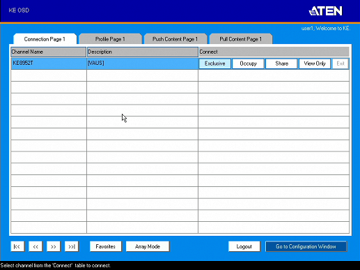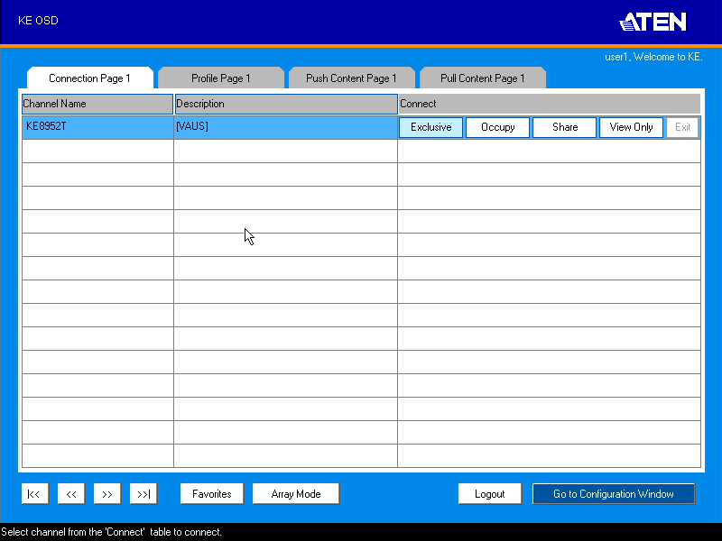В режиме «матрица» пользователю необходимо сначала авторизоваться на приемнике. После этого ему будет показан список доступных для него подключений. Есть возможность отображения экранов удаленных систем в виде матрицы.